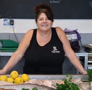 Elaine Lorys, master fishmonger, serves a steady stream of customers. Formerly from a retail background, Elaine has worked at the shop for 30 years and her daughter now works in the industry too.